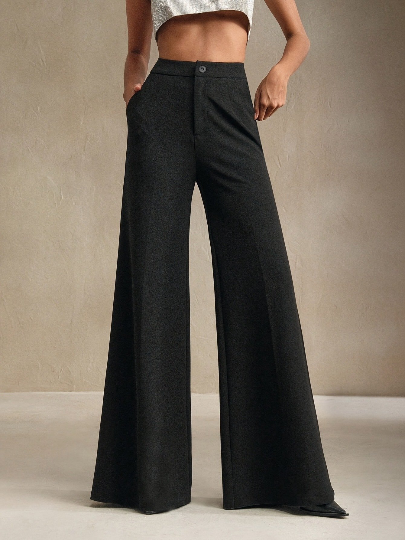 Pantalones de tiro alto y pierna ancha