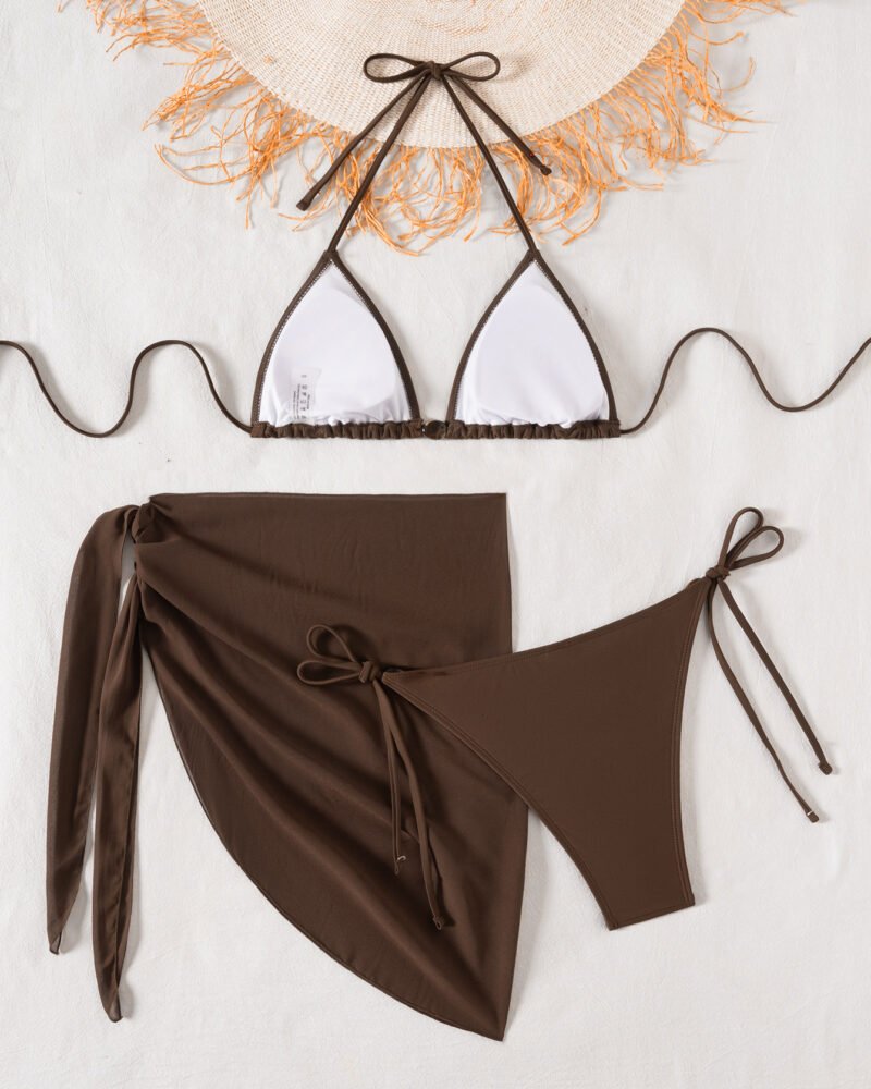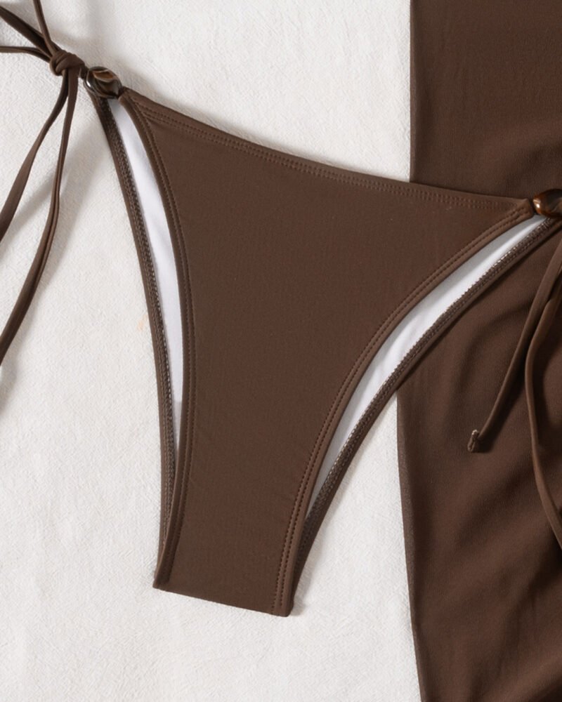 This halter neck bikini set embodies a refined asymmetric silhouette crafted from durable nylon, ideal for leisurely summer vacations. The tie straps ensure a comfortable fit, enhancing both movement and elegance while you enjoy sunny days by the water.