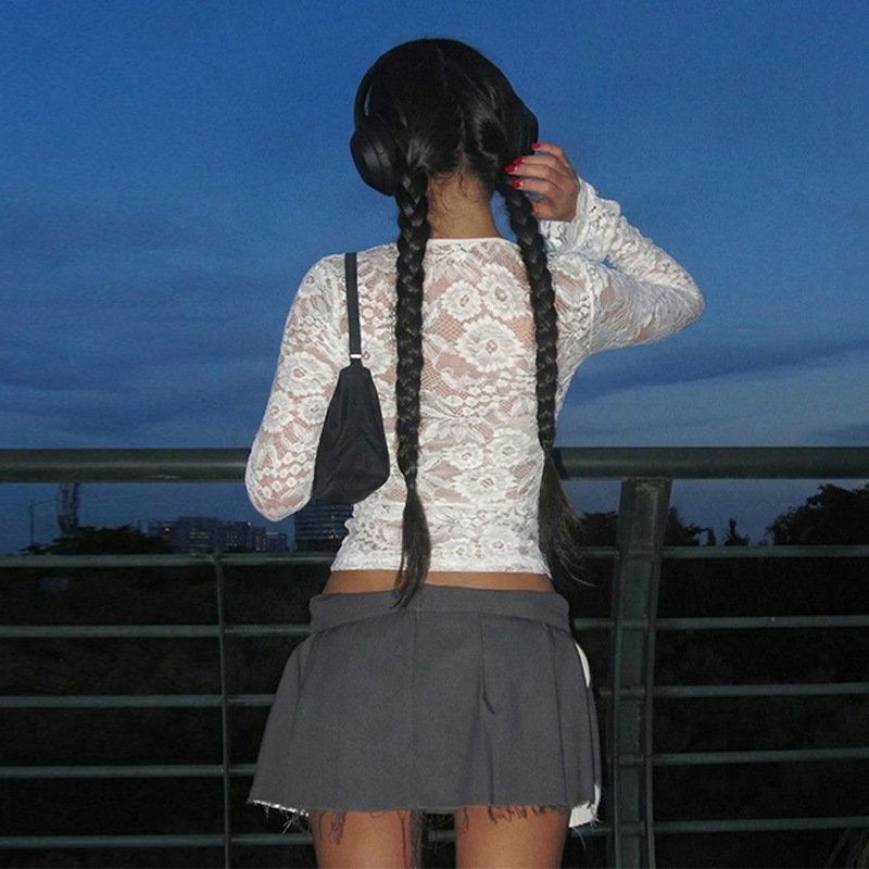 This elegant lace top features a slim fit and a refined V-neckline, crafted from lightweight nylon for a soft touch and graceful drape. Ideal for transitional autumn and winter wears, it works beautifully layered with a blazer or as an engaging standalone piece.