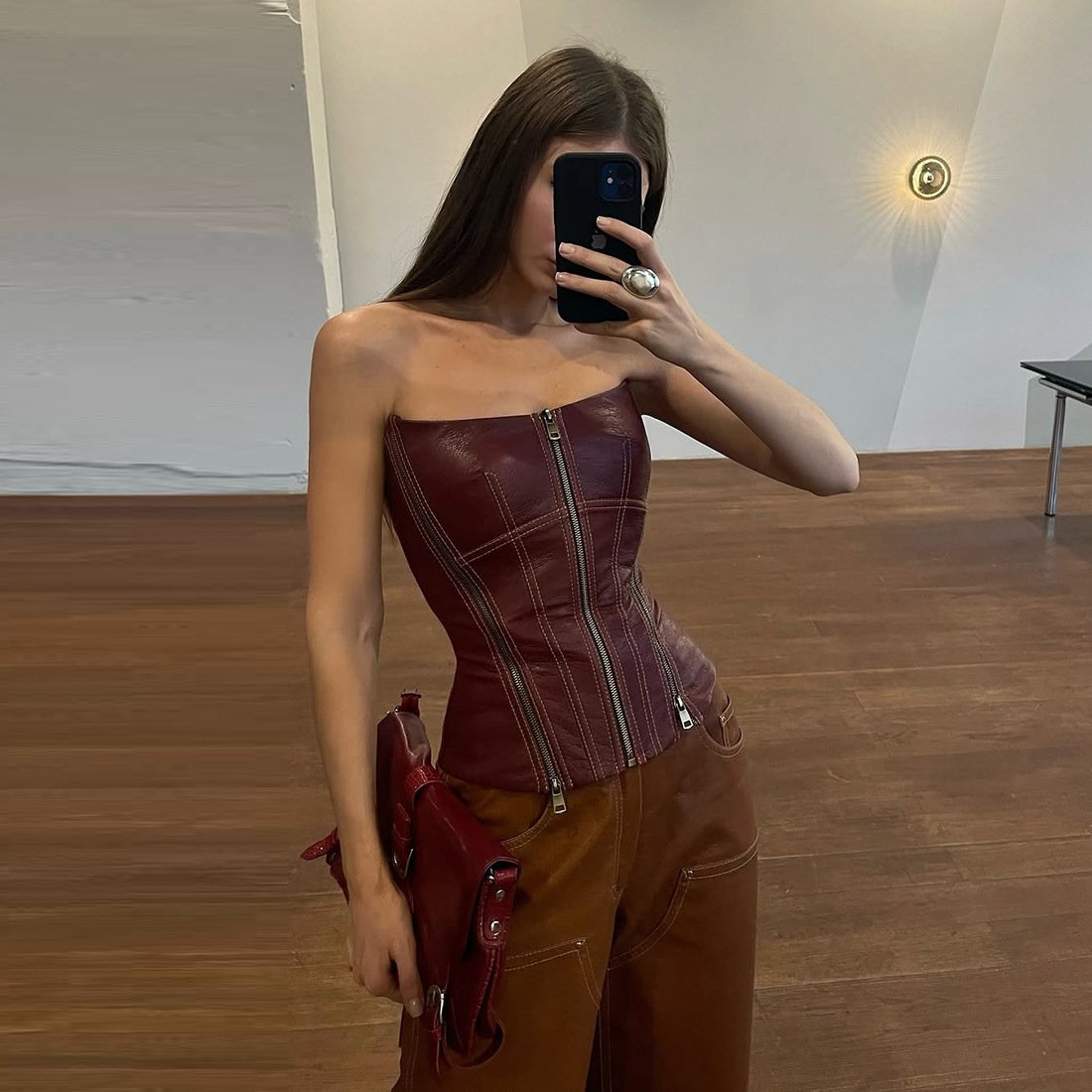 Crafted from high-quality faux leather, this tube top features a slim-fit design that elegantly emphasizes the shoulders while maintaining a refined silhouette. Ideal for warm-weather outings, its backless construction offers a modern and sophisticated edge.