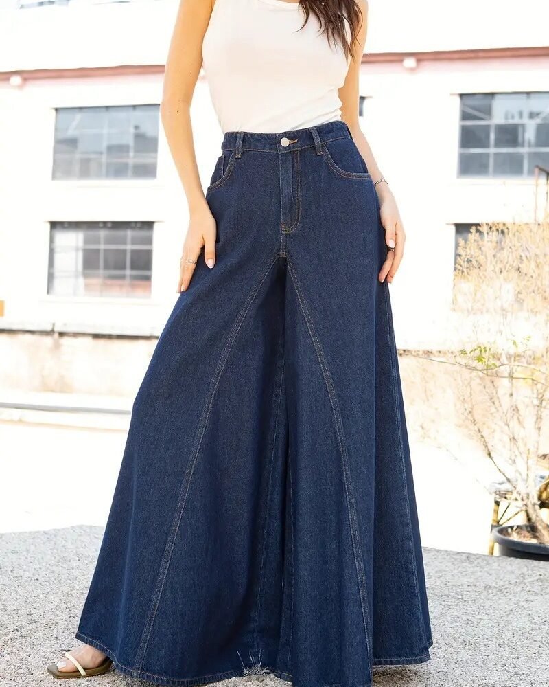 Length / Silhouette / Rise: Full length, wide leg, high rise