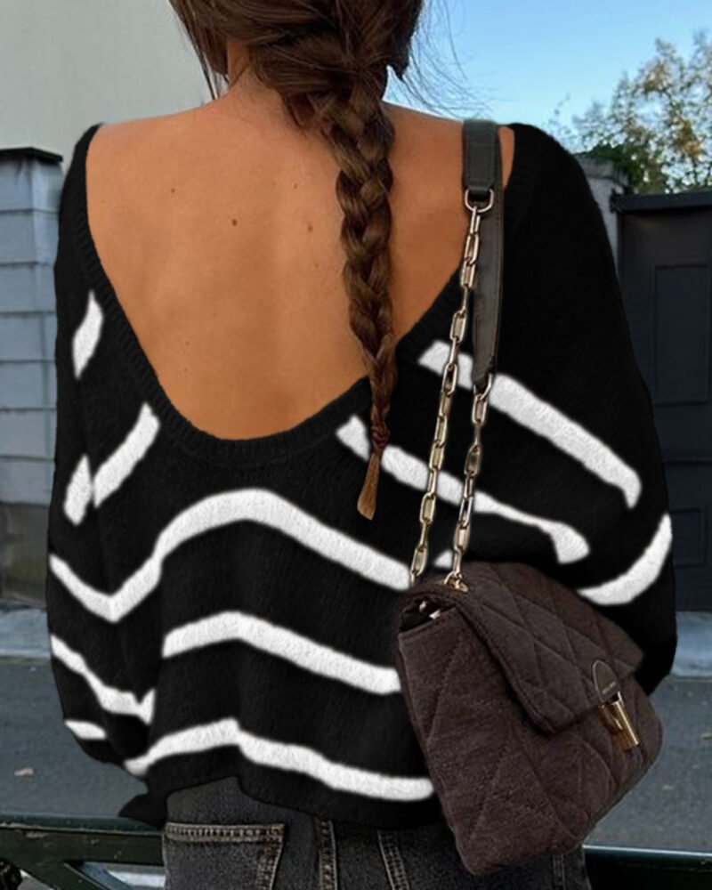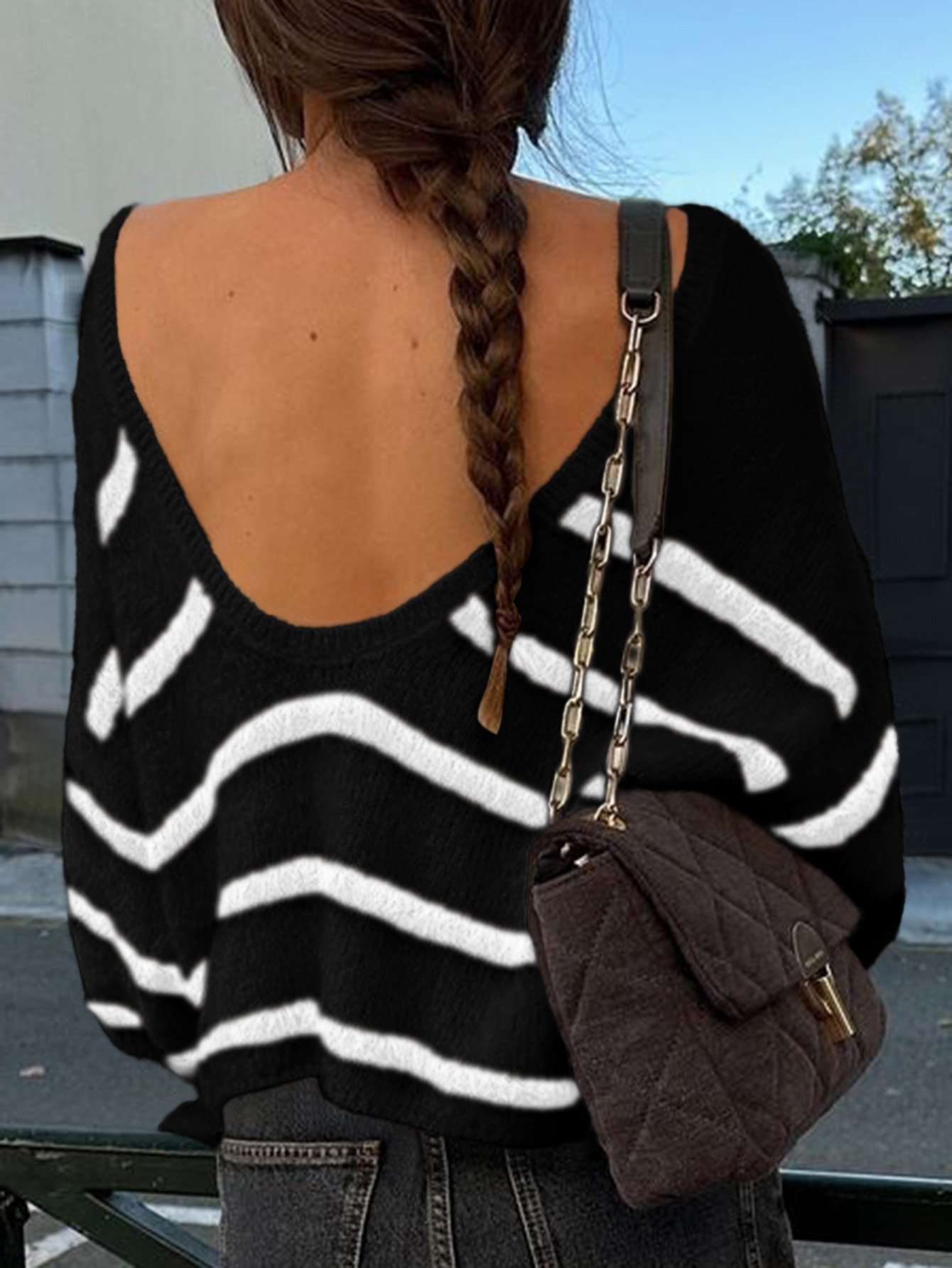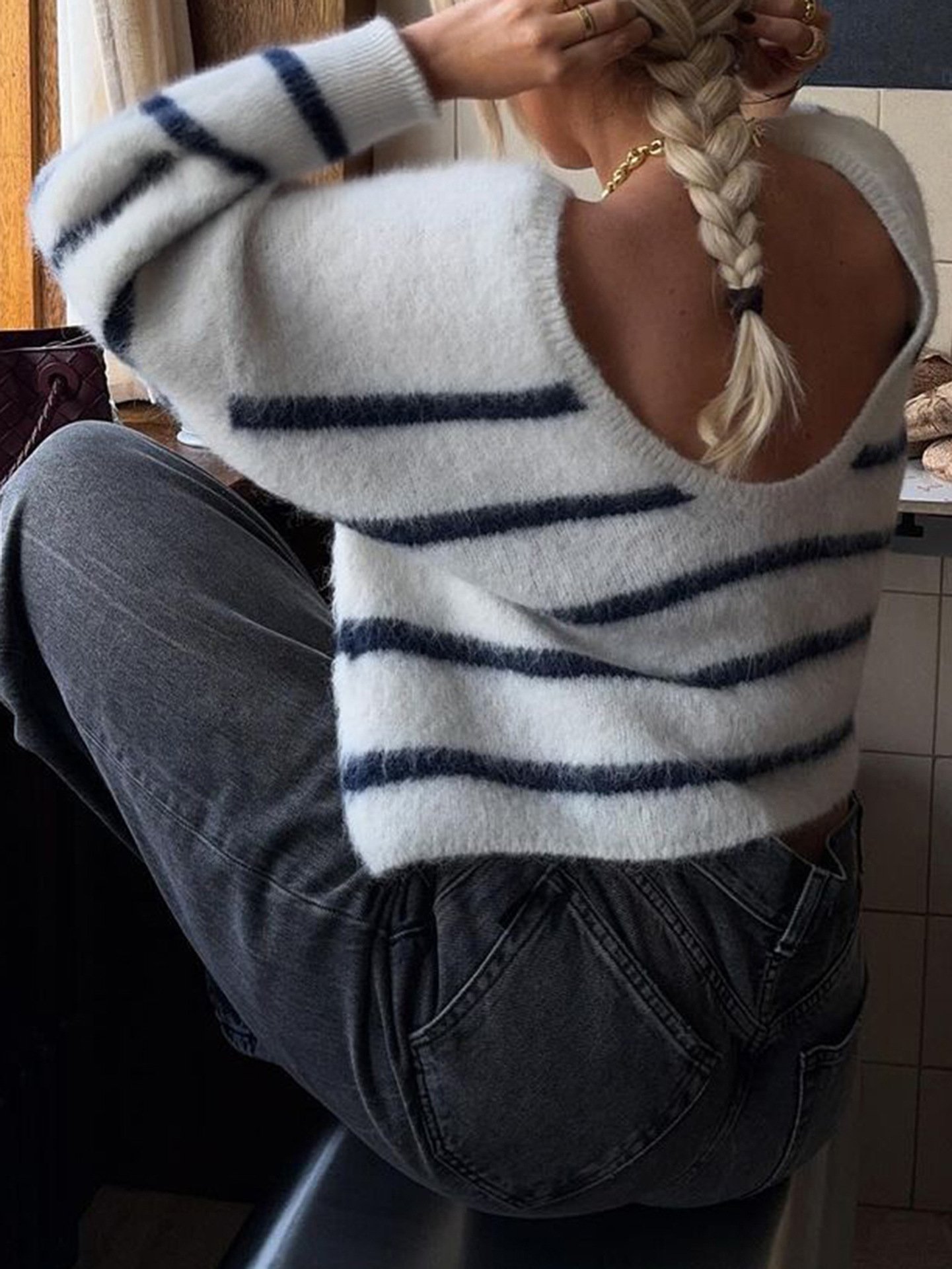 The relaxed silhouette features soft jersey fabric with a timeless striped pattern, ideal for casual settings in both spring and fall. Designed with a crew neckline and long sleeves, this top offers a comfortable fit, seamlessly integrating into a diverse wardrobe.