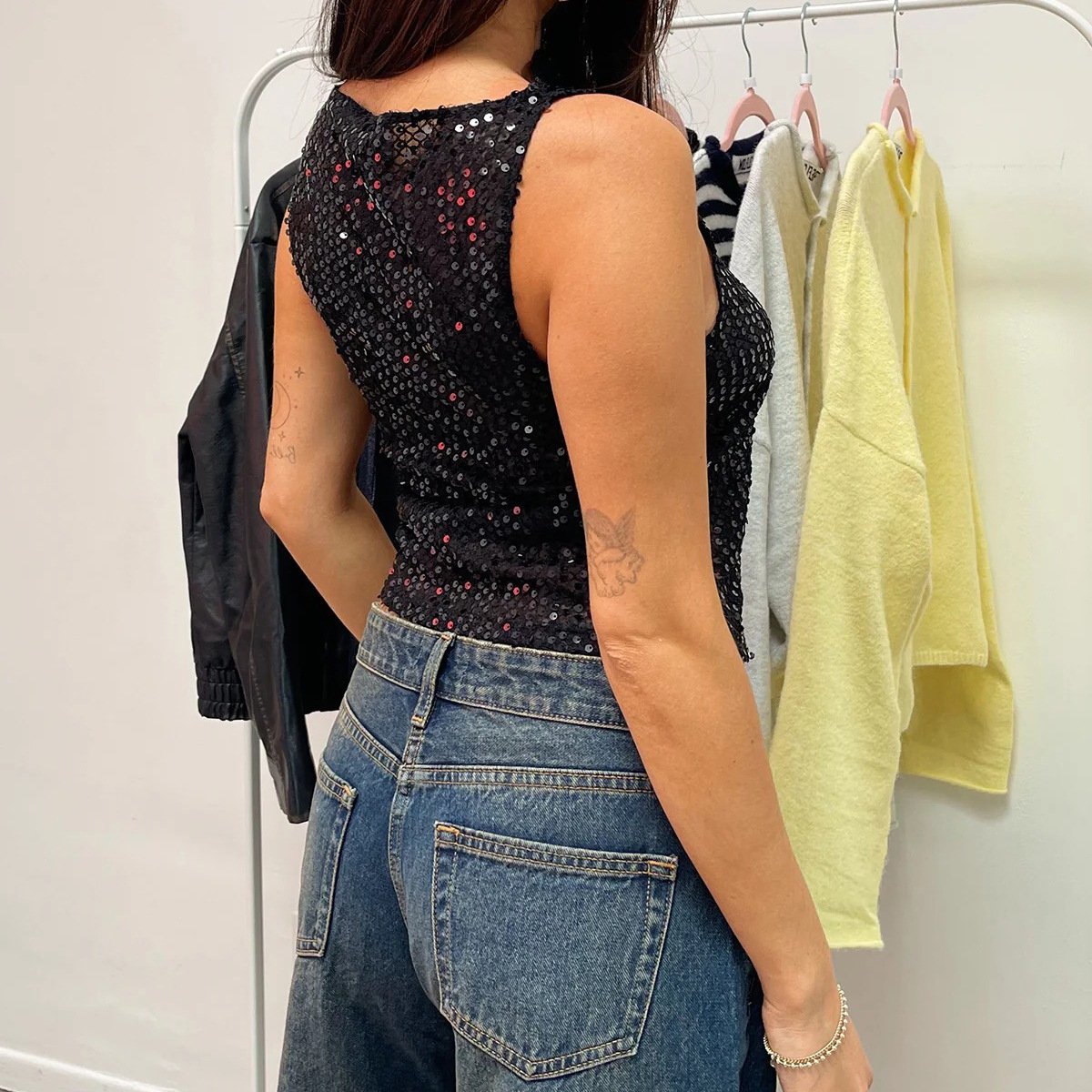 - Fabric: Polyester with sequins
