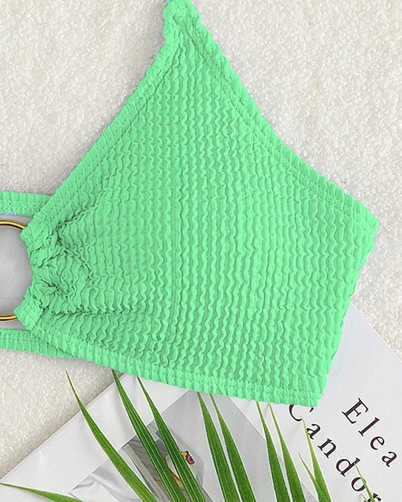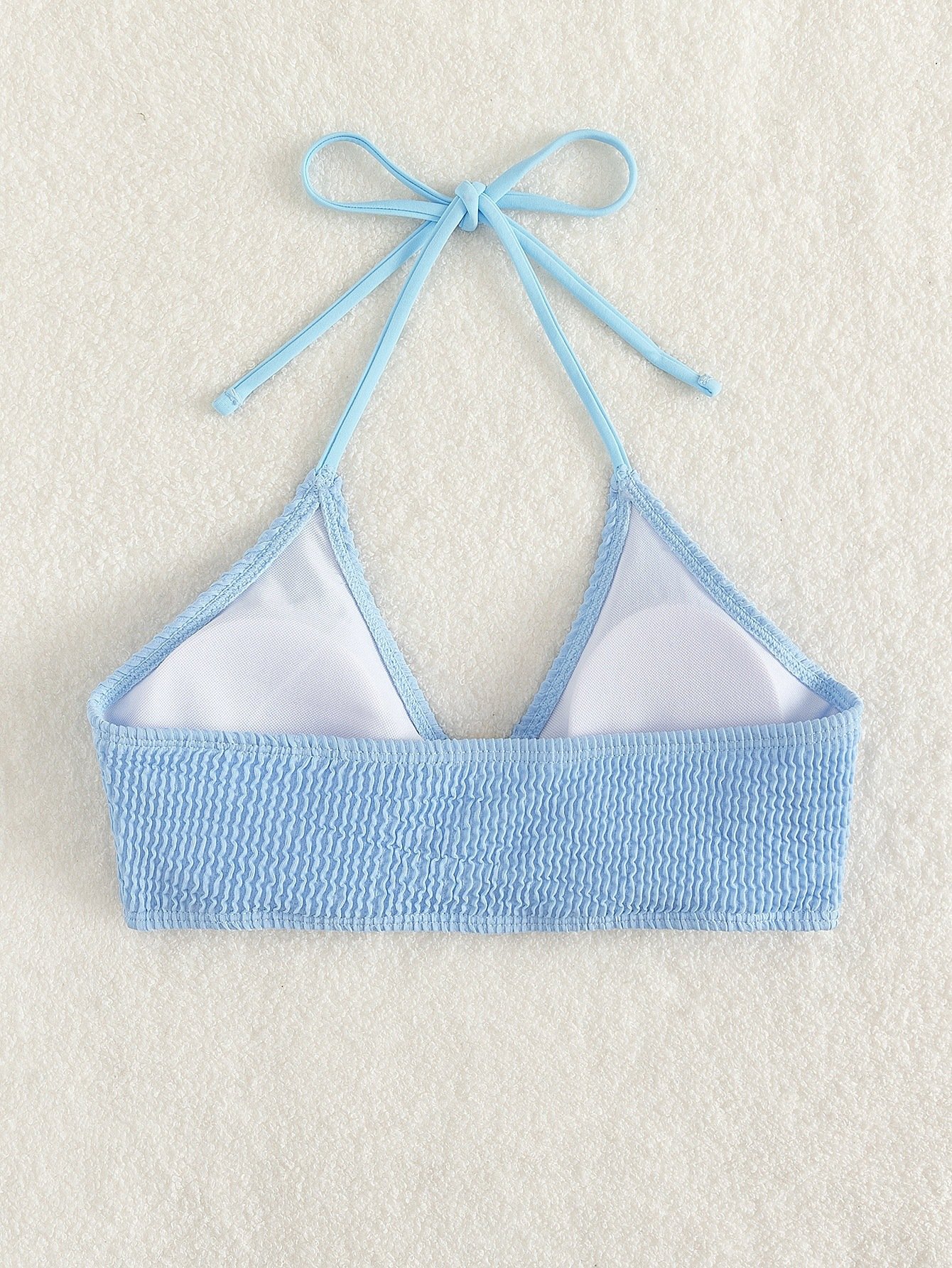 This unlined halter bikini top combines a relaxed silhouette with a lightweight polyester fabric, ideal for summer beach outings. The tie-strap design provides adjustable comfort while maintaining a minimalist appearance, suitable for lounging or engaging in water activities.